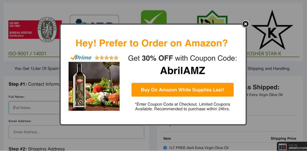 I created a sales funnel and landing page, similar to this one that I made to promote an olive oil brand: